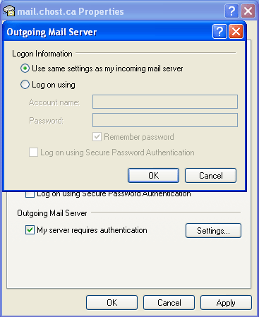 ::::: Outlook Express Configuration ::::: To send and receive mail, please use the following server settings. IMPORTANT: To avoid un-necessary connections, set your email client (under Options) to check for new mail every 10 minutes or more (i.e. every 30mn is best)